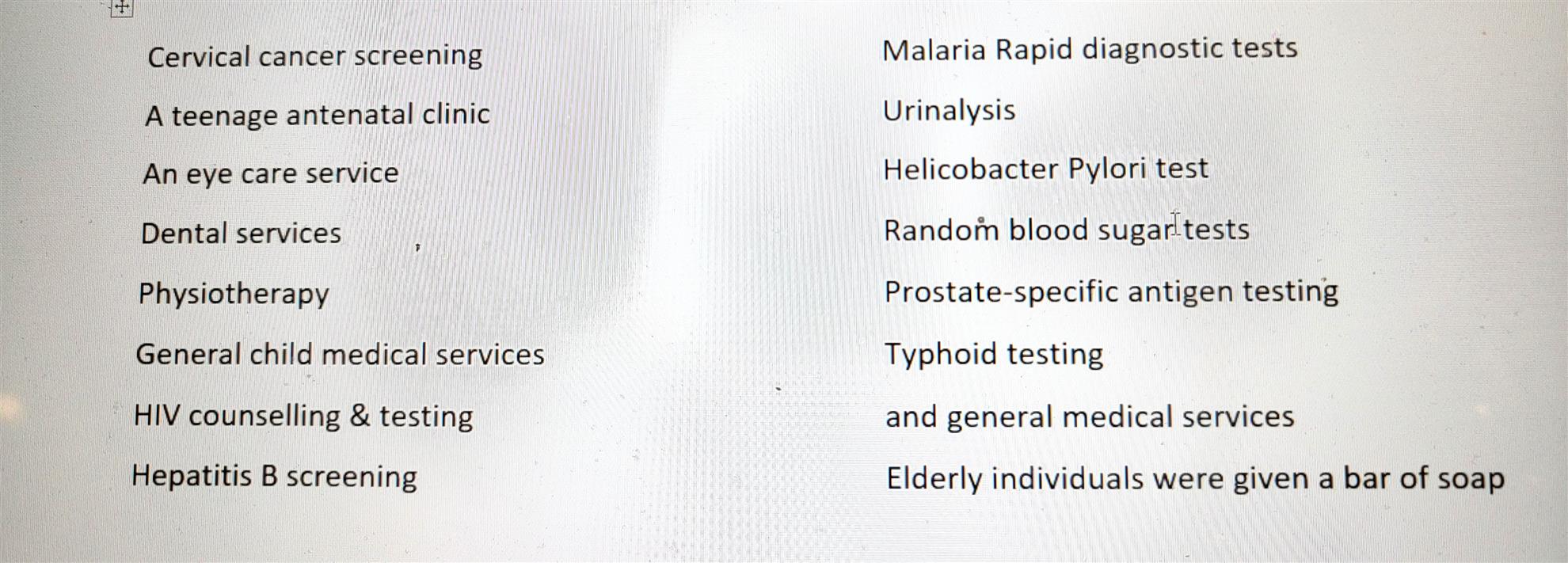 Wide-ranging services offered by medical personnel included -