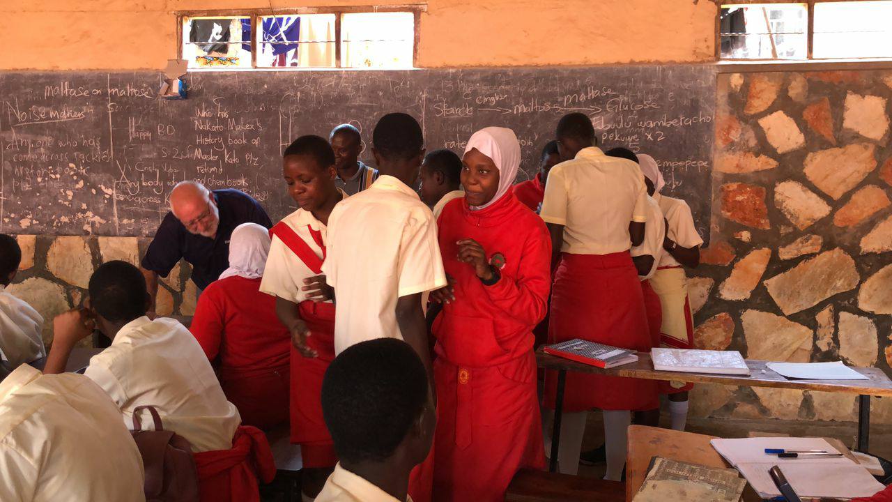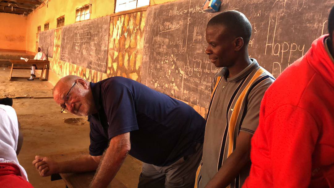 A visit to the Doska Children's Home was on Roger's agenda. He met with staff and students and donated funds for the purchase of books and other school supplies. Some children in the community also benefited from gifts of clothing, small toys and bed-nets. The bed-nets are particularly valued because of the prevalence of malaria-carrying mosquitos. One handicapped boy received new crutches to replace the sticks he was "making do" with. This visit was particularly important a some of the children attending this school are sponsored by Roger or other Cornwall-area people.